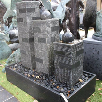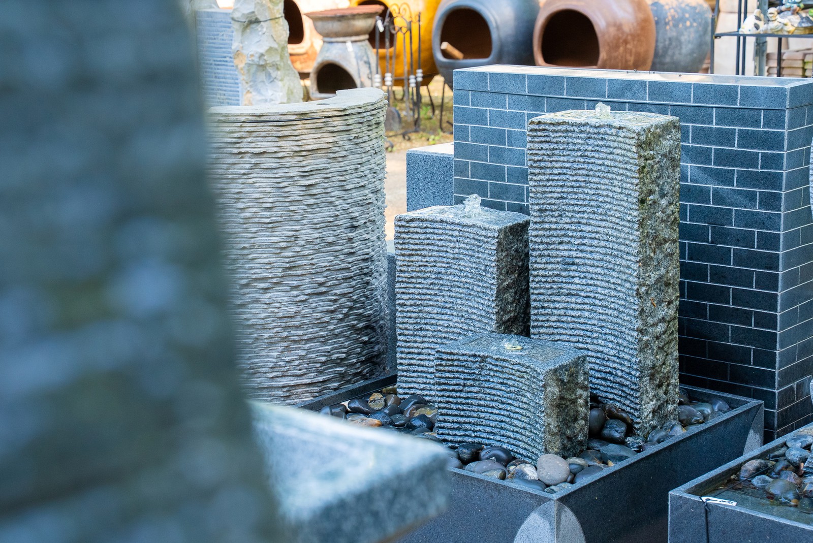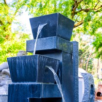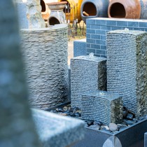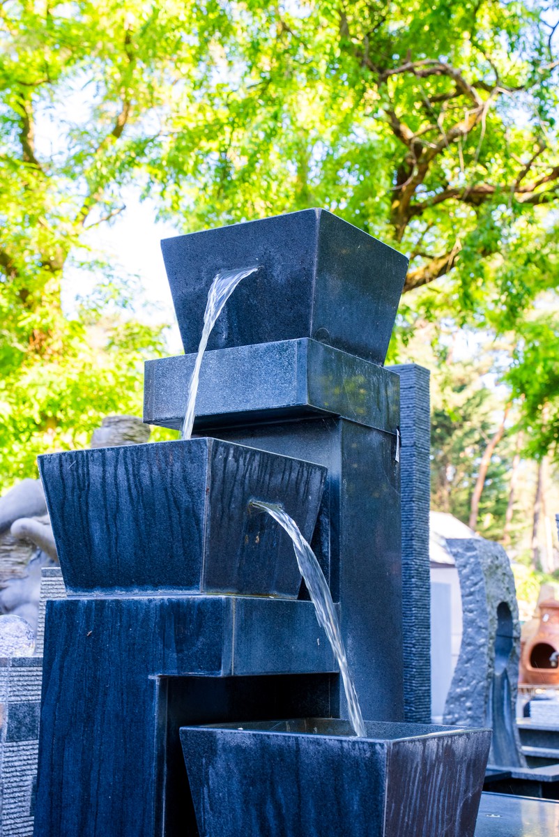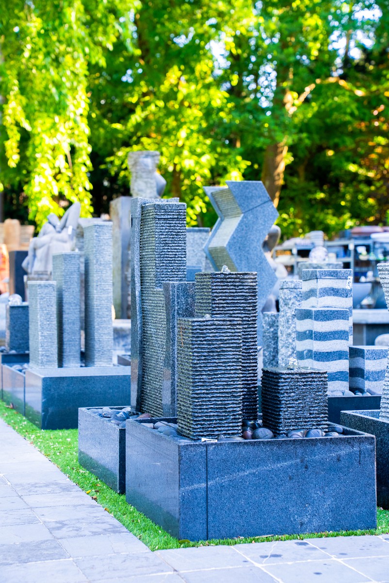 Fonteinen en waterornamenten die zorgen voor beweging en ontspanning.