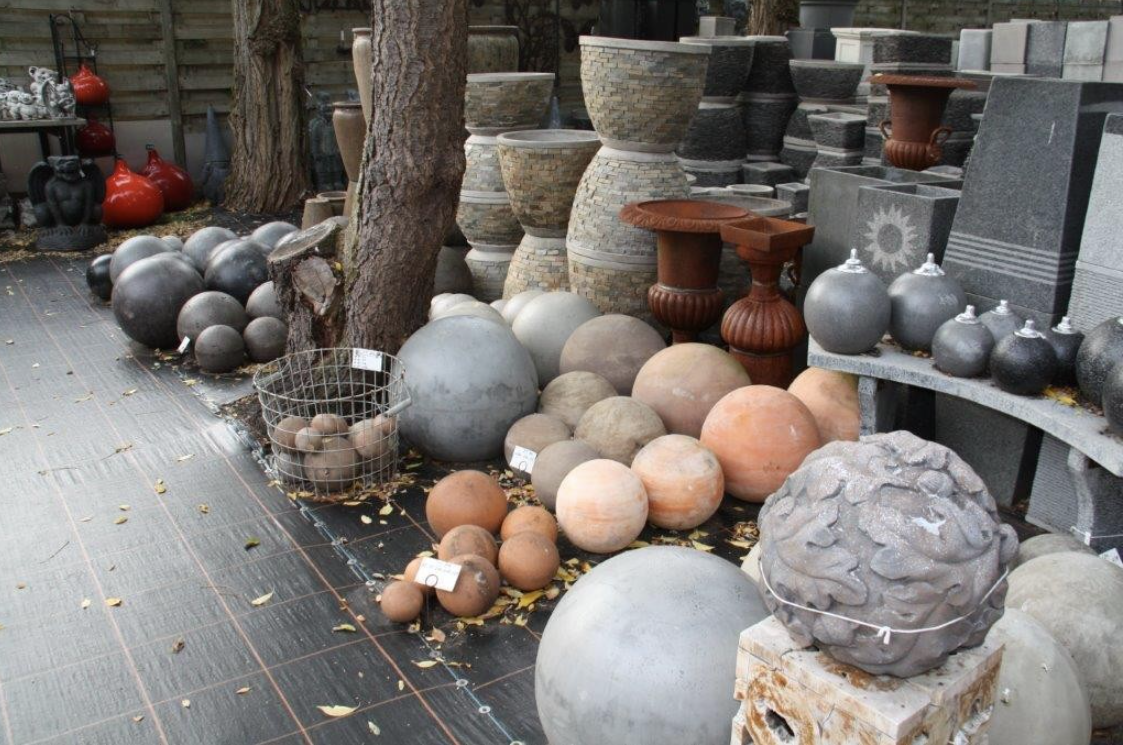 Heel veel keuze aan stenen tuinpotten en versiering. Zeer vriendelijke bediening.